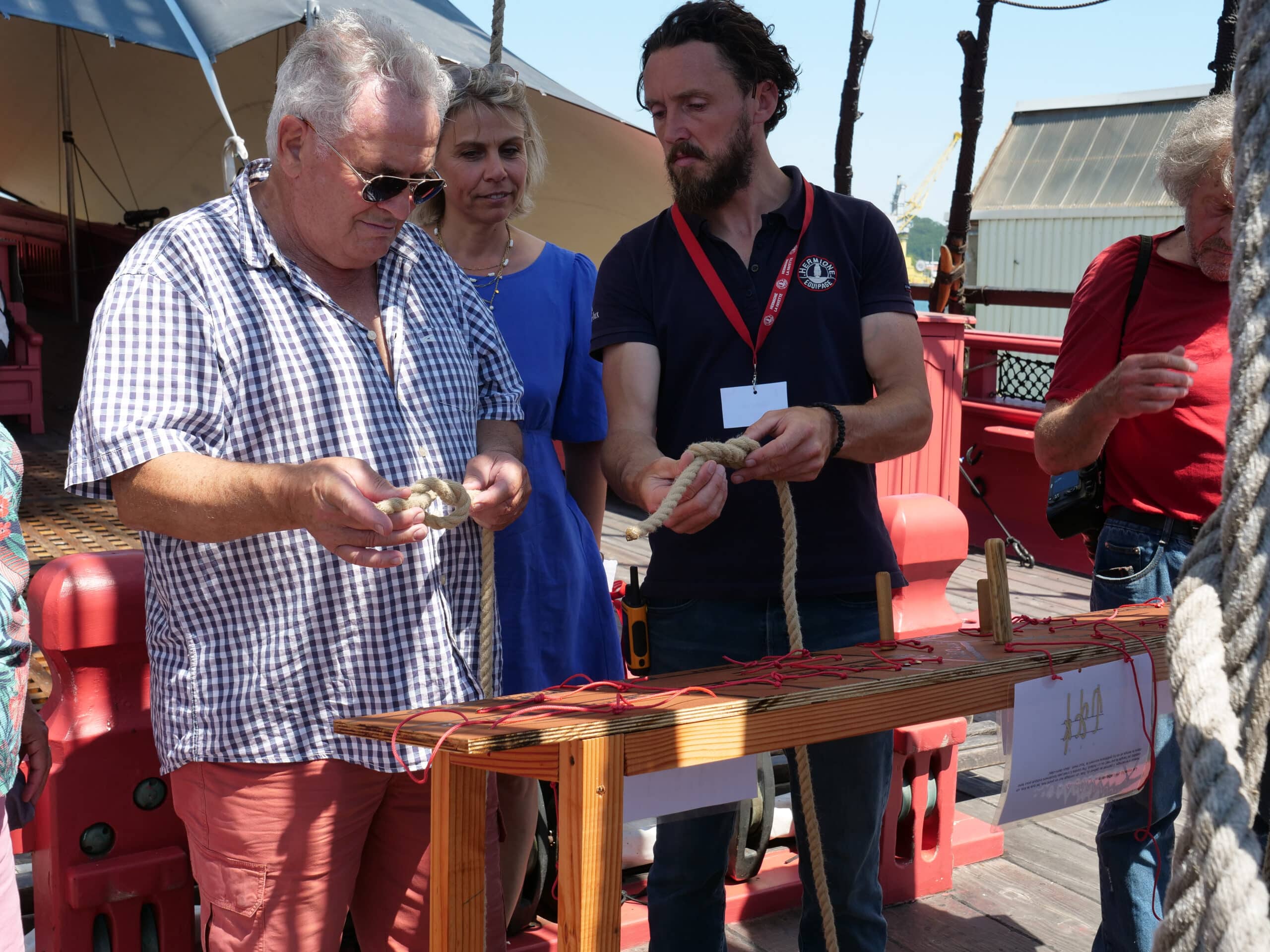 Venez apprendre la manœuvre d’une voile carrée utilisée par les gabiers de L’Hermione pour s’entraîner. L’animation met avant la solidarité de cette activité qui demande beaucoup de la coordination et de la concentration.