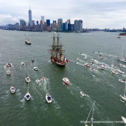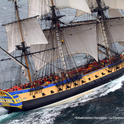 Suite à une mauvaise manœuvre du pilote Guillaume Guillemin, L’Hermione fait naufrage au large du Croisic le 20 septembre 1793. À partir de 1992, une minutieuse reconstruction de L’Hermione a commencé en utilisant les plans d’une frégate de la même série, grâce à l’association Hermione-La Fayette qui en est le propriétaire et l’armateur. Le navire a été mis à l’eau en 2012 et a effectué son voyage inaugural à travers l’Atlantique en 20215, suivant les traces du voyage historique qu’il avait effectué en 1780. Un grand moment !