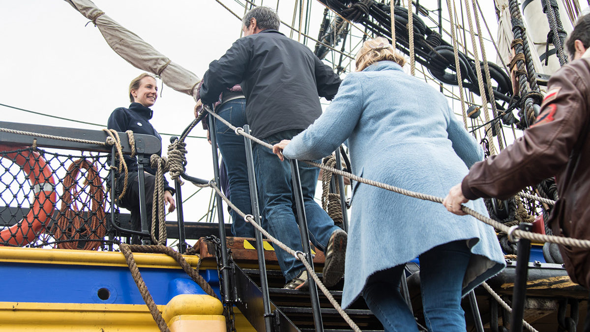 In the spirit of co-construction, we offer many opportunities to support us to all companies or economic players wishing to associate their image with the Hermione project at dock or at sea and who wish to support our associative challenge based on its values of commitment, skill sharing, know-how, solidarity and enthusiasm.