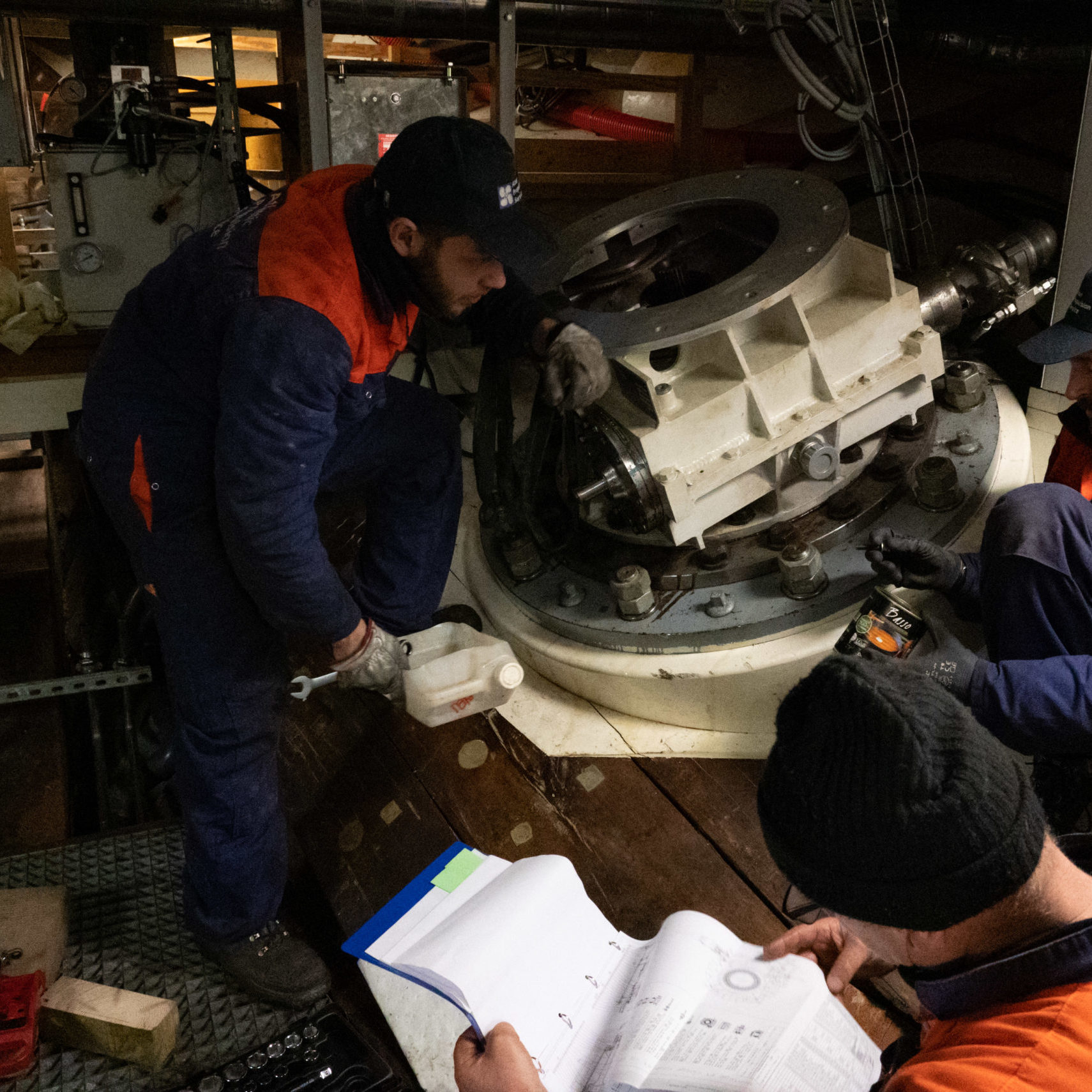 Il existe peu d’entreprises de mécanique marine capables de prendre en charge la révision de propulseurs de cette dimension. La société Azur Marine Propulsion a remporté l’appel d’offre pour leur révision et a procédé au démontage et au contrôle complet des propulseurs. Certaines pièces d’usure devront être remplacées. C’est par exemple le cas des roulements et des joints inaccessibles en temps normal. L’objectif de cette maintenance approfondie est aussi d’améliorer la protection cathodique des moteurs, pour avoir une meilleure protection des moteurs ainsi qu’un entretien moins coûteux à l’avenir.