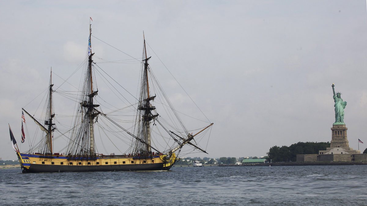 En 2015, L’Hermione se hace a la mar para su viaje inaugural a América tras los pasos de La Fayette, un viaje que simboliza la libertad, para recalcar la amistad francoamericana y recordar la ayuda de Francia a los insurgentes americanos.