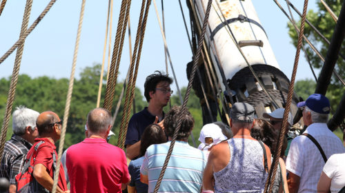 Un miembro de la tripulación le recibe para contarle su aventura a bordo de L’Hermione. Descubra el día a día de los marineros de hoy, su trabajo durante los turnos, sus recuerdos de las travesías. Acceso a la cubierta superior, cubierta de batería, sala de los oficiales incluida, entrecubierta con la zona de descanso y el puente de mando.