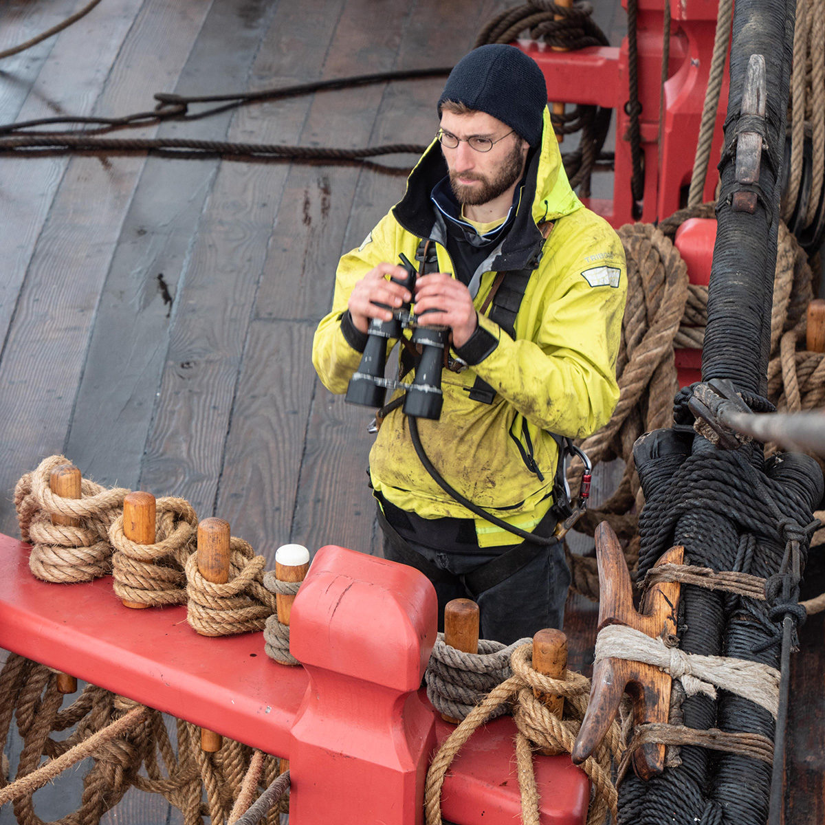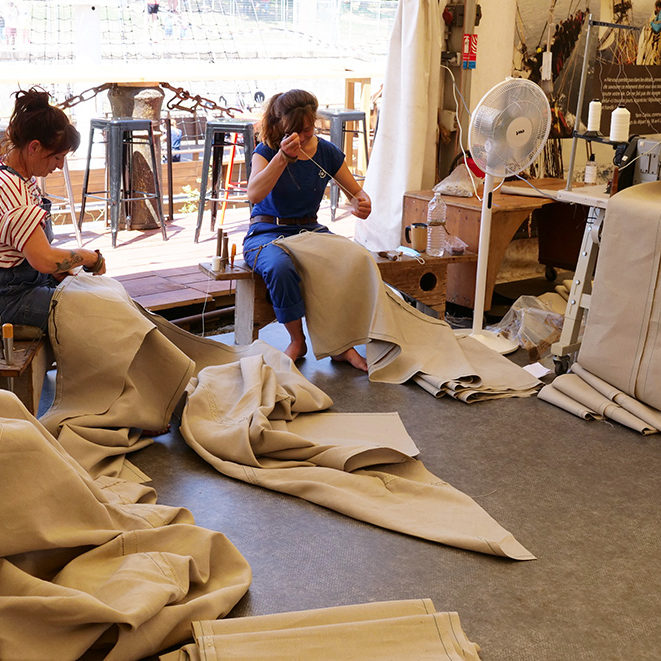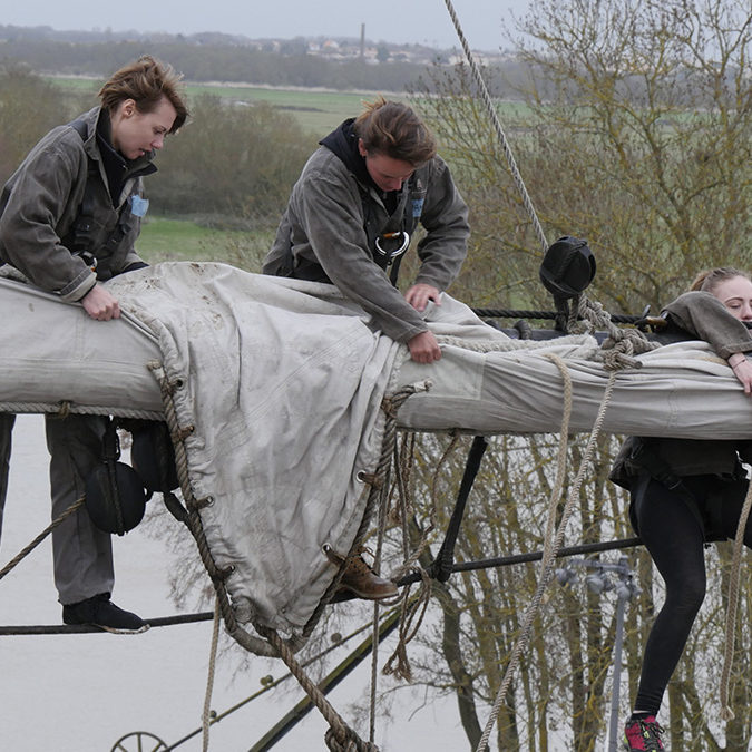 La formation comprend une partie théorique avec les principes de la navigation sur gréement carré, les règles de sécurité du travail en hauteur, l’organisation de la vie à bord, et une partie pratique avec des ascensions et des manœuvres sur notre voile d’exercice.