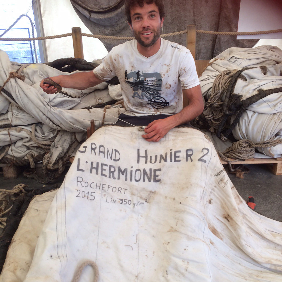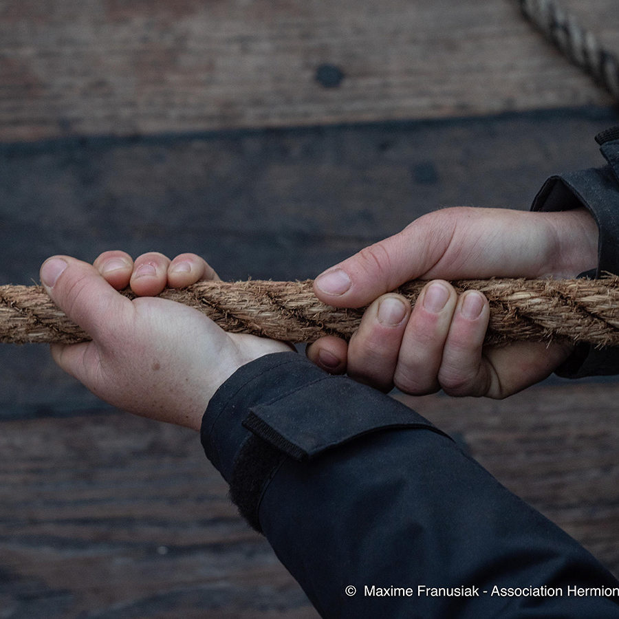 Femmes et hommes, étudiants ou actifs, les personnes qui souhaitent prendre la mer en tant que gabiers (marins volontaires) à bord de L’Hermione doivent suivre une formation rigoureuse. Celle-ci est dispensée à Rochefort (port d’attache de la frégate), par des marins professionnels et supervisée par le commandant de la frégate.