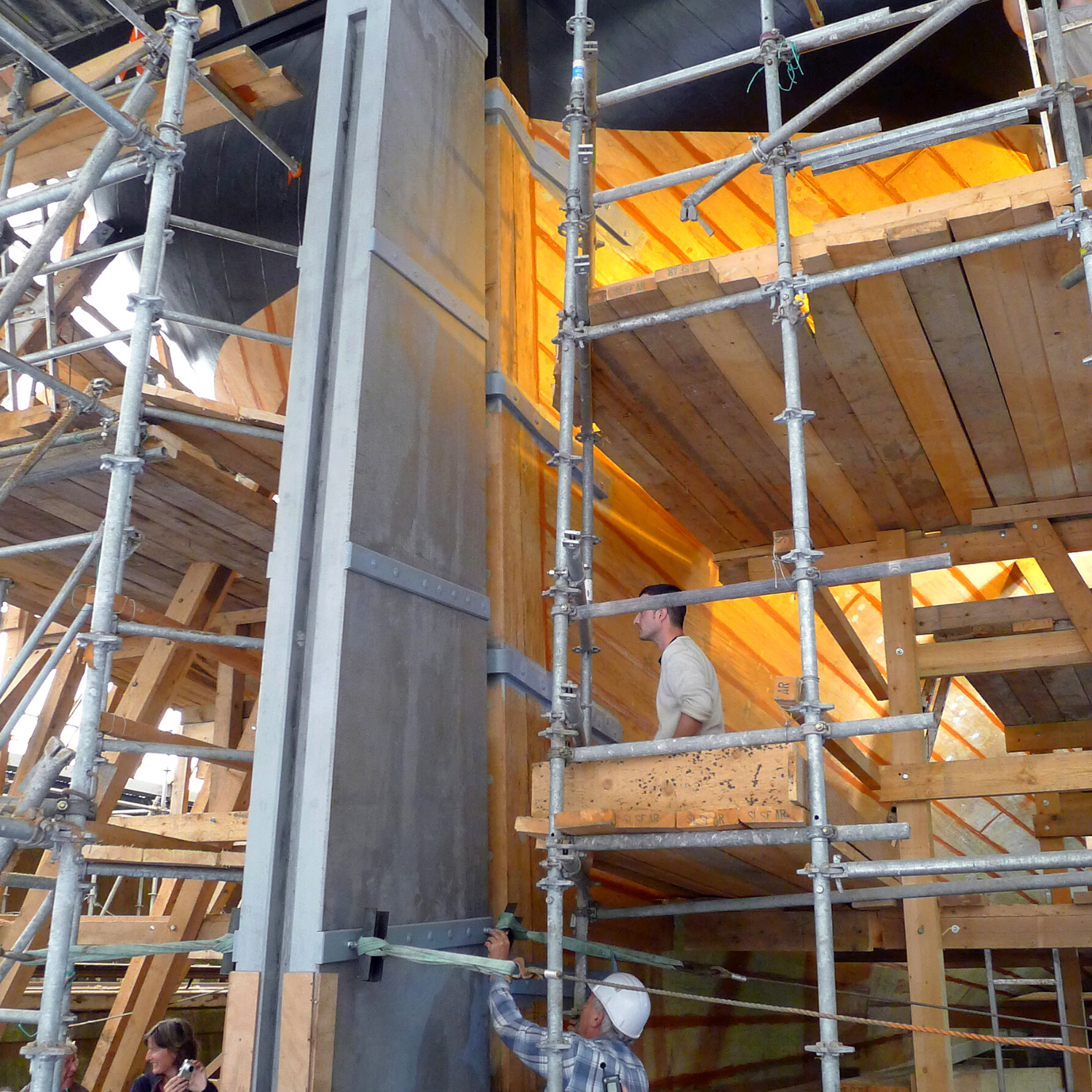 La construction et la pose du contre-étambot vont commencer dans les prochains jours. Ce sera l’une des dernières pièces de charpente qui sera remplacée à l’arrière de la coque. Ensuite, il faudra positionner les bordées du navire, c’est-à-dire les planches en bois qui forment la peau externe de L’Hermione et assurent son étanchéité. A l’issue de ces travaux, le grutage et la pose du safran seront possible.