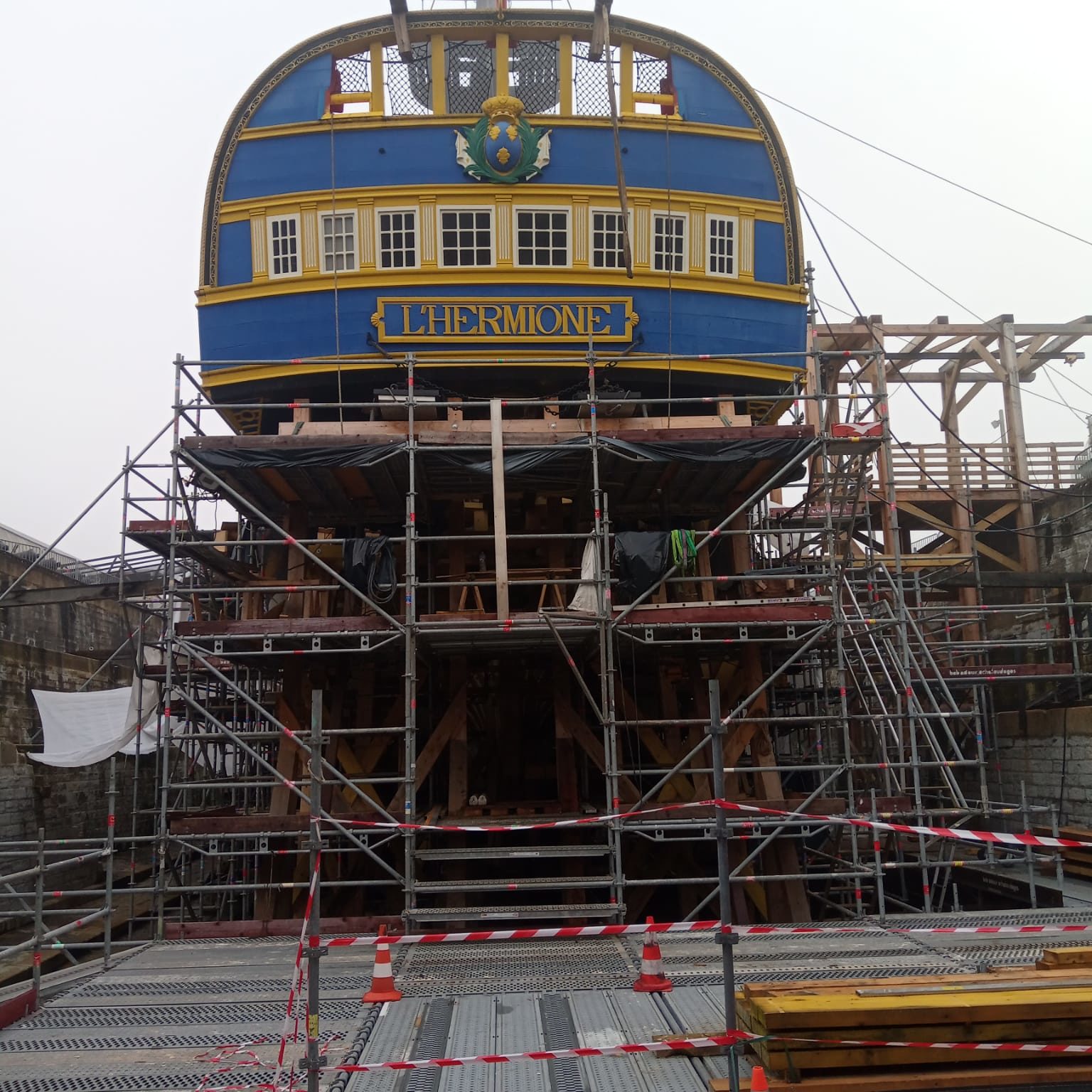 Janvier est traditionnellement le mois de fermeture de nombreux sites de visite. Mais pendant ce temps, les travaux du Grand Carénage de L’Hermione continuent à Anglet ! Cet hiver, l’entreprise Asselin poursuit les travaux à l’arrière de la frégate. Découvrez dans cet article les dernières informations sur le chantier !