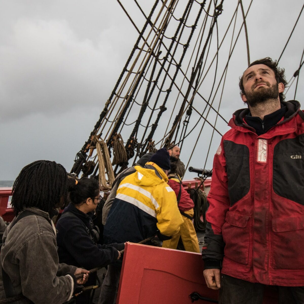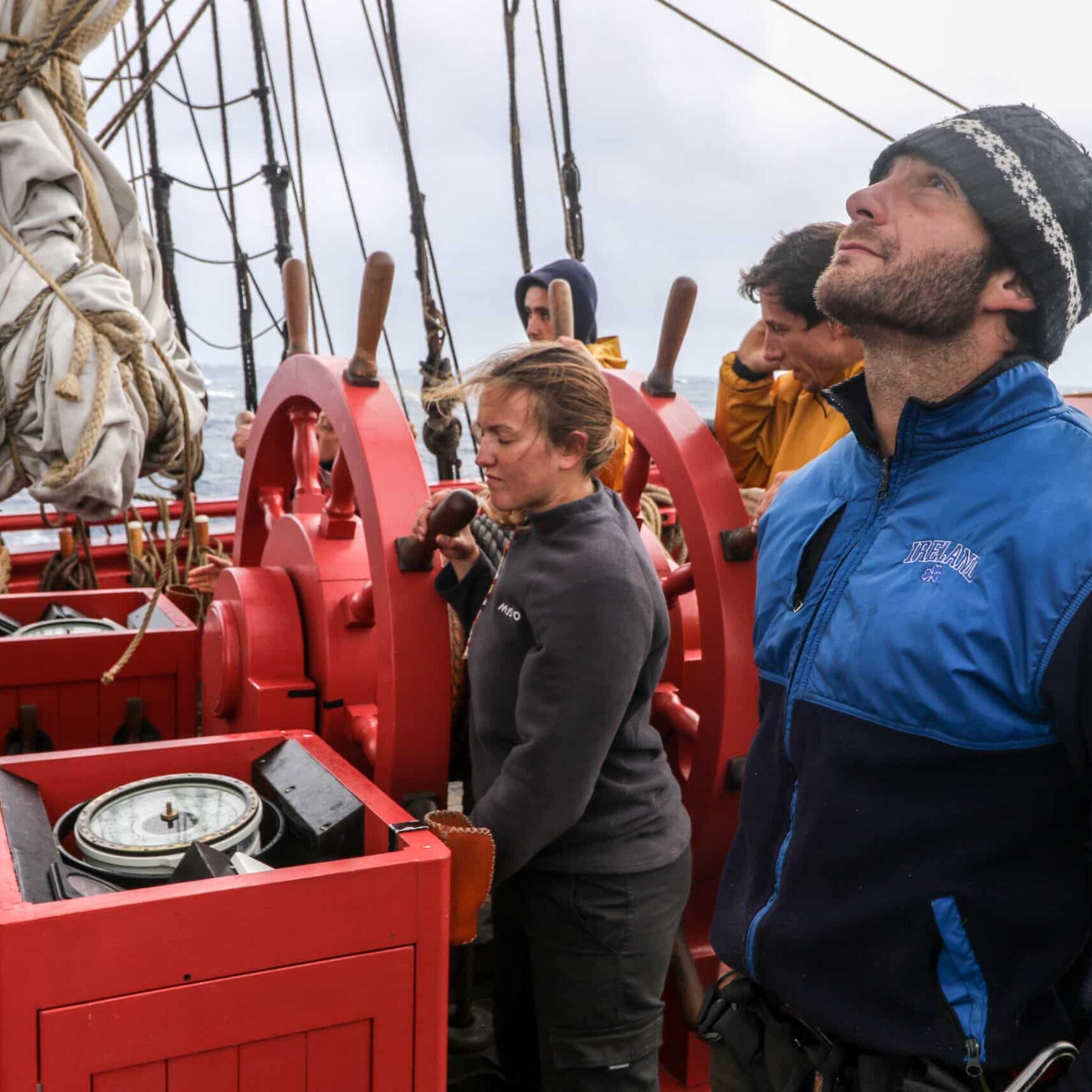 Les journées commencent à 8h30 pour un briefing « déroulement de journée », les différents jobs sont distribués aux différentes équipes. Pour les débutants, nous expliquons plus en détails les règles de sécurité, les règles du maniement de l’outillage, et, pour ceux qui dorment à bord, les règles de sécurité liées au navire. L’idée est de les former pour pouvoir travailler correctement en sécurité. Nous leur donnons aussi des cours sur le gréement et les voiles, le vocabulaire maritime… En gros, nous les faisons entrer doucement dans le monde maritime, si particulier et complexe à la fois.